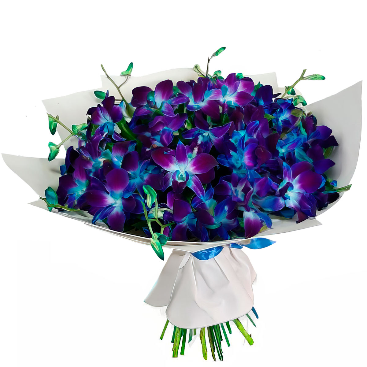 Дендробиумы синие. Упаковка (лента, пленка, крафт, сетка, пленка матовая)