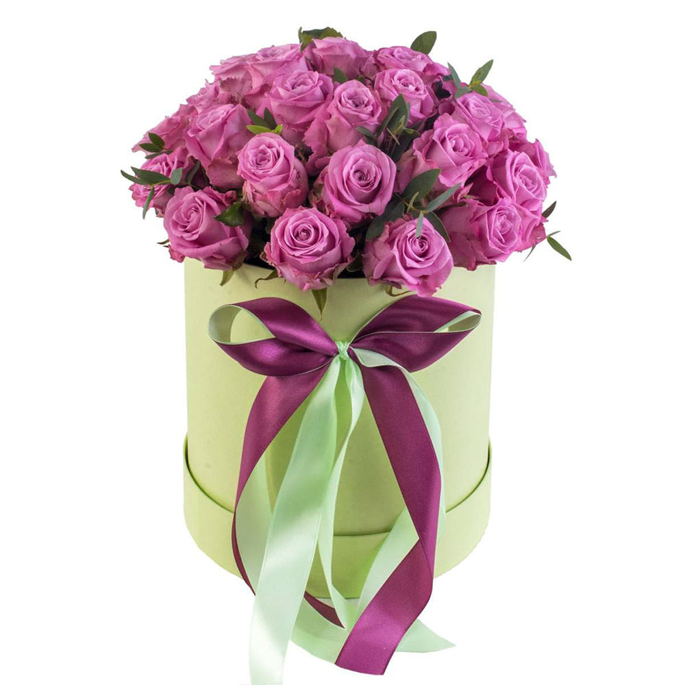 Роз одноголовая сиреневая, фисташка. Упаковка (шляпная коробка, квадратный бокс, коробка сердце, оазис)