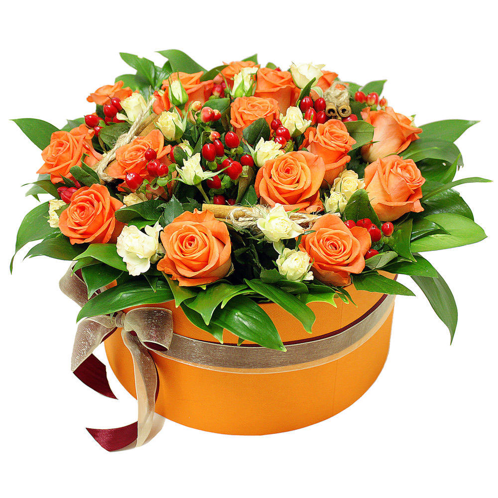 Цветы в коробке «Оранжевый закат» с доставкой по г Архангельск: вы можете купить букет в онлайн-магазине «Флормания» по цене от 2990 руб.