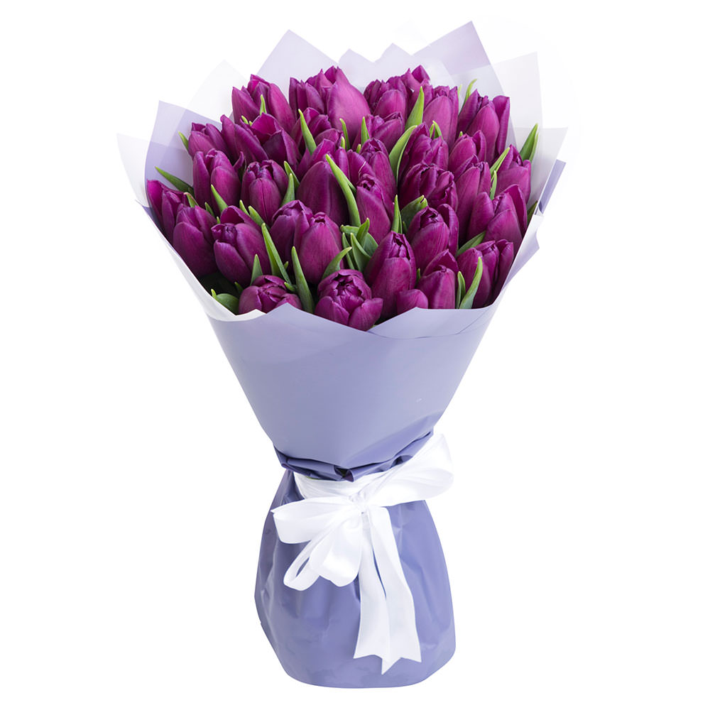 Тюльпаны фиолетовые с доставкой по г Архангельск: вы можете заказать букет в цветочном гипермаркете «Флормания» по цене за 210 руб.